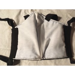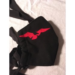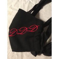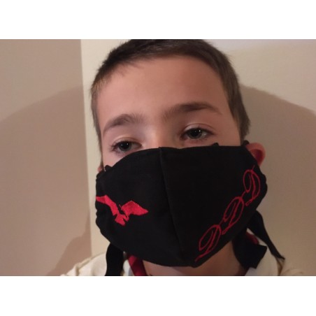 Masque noir aux couleurs du Domaine de Dernacueillette. En coton doublé avec filtre à l'intérieur. Lavable à 90°C.